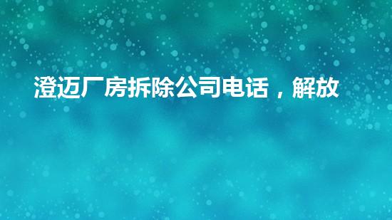 摘要:澄迈厂房拆除公司电话,解放您的困扰!这篇文章将会从化工厂房拆除的技术、服务、先进设备、环保施工等多个方面阐述澄迈厂房拆除公司的电话解决方案,希望读者能够从中获得有价值的信息。正文:一、先进技术—...