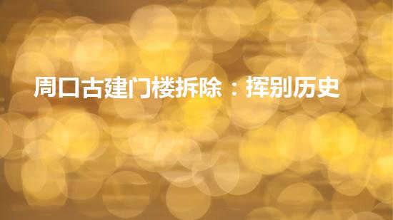 摘要:周口市近日进行了一场关于古建门楼拆除的公共话题。这一事件在社交媒体上广泛热议,反响强烈。古建门楼作为历史文化遗产,代表着过去时代的风貌与人们的生活方式,具有特别的意义。本文从拆除行业专家的角度,...