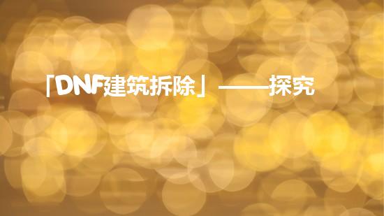 「DNF建筑拆除」——探究游戏中建筑物拆卸机制
