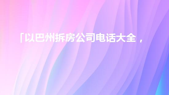 「以巴州拆房公司电话大全,专业拆房服务一站式解决!」