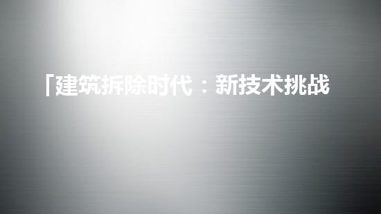 摘要:建筑拆除是现代城市化进程中不可避免的环节,同时也是一项极其复杂且危险的工作。本文主题为「建筑拆除时代:新技术挑战与机遇」,探讨现在建筑拆除领域中的新技术与传统技术的区别、优缺点和发展趋势,以及如...
