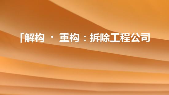 摘要本文介绍了一份拆除工程公司名字大全推荐,为读者提供了一个全面了解拆除行业的机会。作为化工技术专家,本文的作者将从多个方面对这个主题进行详细的分析,包括拆除的技术和设备、环保要求、人员安全等方面。正...