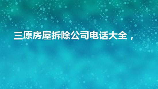 摘要:三原房屋拆除公司电话大全,为拆迁、清理、疏通等服务提供了全方位的解决方案。如果您需要进行这些工作,可以联系这个电话大全。正文:一、拆迁三原房屋拆除公司为拆迁服务提供全面的解决方案,包括对拆迁范围...