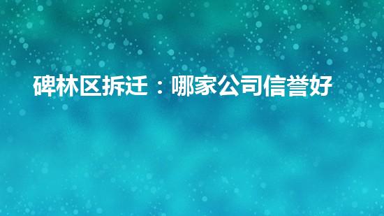 碑林区拆迁:哪家公司信誉好?