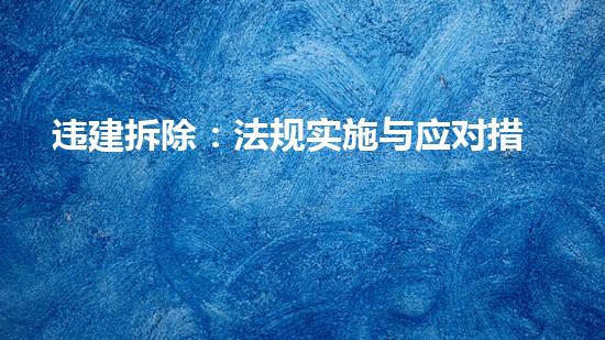 摘要:违建拆除是一个持续关注的话题,因为对于城市建设、环境保护和安全生产等方面均有着重要的影响。本文以违建拆除:法规实施与应对措施为中心,深入探讨了该领域的相关法规和实践应对措施。文章首先介绍了相关背...