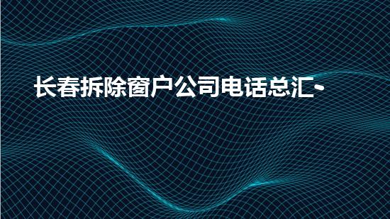 摘要:本文为长春拆除窗户公司电话总汇-免费预约进行了详细的专业深入阐述。文章从拆除行业专家的角度,介绍了该公司的业务范围、技术特点以及环保施工等方面的内容,旨在为读者提供全面、专业的信息。正文:一、公...