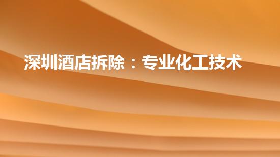 摘要近期,深圳市一家酒店拆除引起了人们的广泛关注。作为该项目的化工技术专家,我将通过本文详细阐述该项目的专业化工技术实施。本文将从设备回收、污泥减量化、废液处理、危废处理、环保施工等方面进行深入分析,...