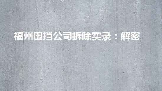 福州围挡公司拆除实录:解密城市更新背后的故事