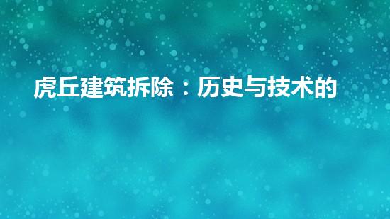 摘要:本文围绕虎丘建筑拆除,探讨历史和技术的交汇。首先介绍背景信息,引出读者的兴趣。然后,拆除行业专家从多个方面详细阐述了虎丘建筑拆除的重要性、技术挑战、环境保护、回收利用等问题,并引用了相关的研究和...