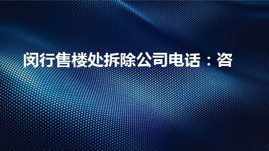 闵行售楼处拆除公司电话:咨询、预约、服务一站式解决