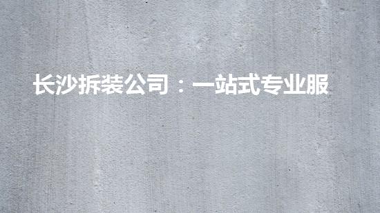 长沙拆装公司:一站式专业服务,快速解决您的烦恼