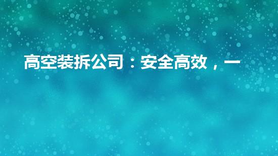 摘要高空装拆公司是一个专业化的拆除公司,专注于各类高空设备和建筑的拆除和清理工作。本篇文章将介绍这样一个高技术公司的详细信息,包括其提供的服务、技术和进展。在不断发展的市场竞争中,高空装拆公司以其安全...