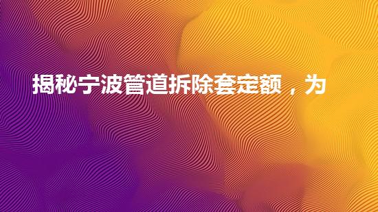 揭秘宁波管道拆除套定额,为你详解价格和规范操作