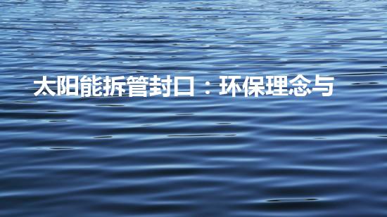 摘要:太阳能作为一种可再生能源,正被越来越多的人所重视。然而,在太阳能热水器安装过程中,需要拆除管道,这对环境会造成较大的影响。本文从环保理念与施工实践两个方面出发,深入分析了太阳能拆管封口的实践经验...