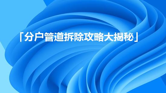 摘要:在浴室、厨房等地方,分户管道拆除是不可避免的一步,但是这个过程可能会带来许多麻烦和困难。本文将会为您介绍分户管道拆除的相关知识,让您更好地应对和解决相关问题。正文:一、分户管道拆除前需要注意的问...