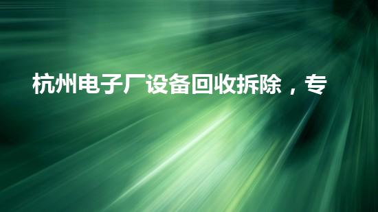 杭州电子厂设备回收拆除,专业高效处理旧设备!