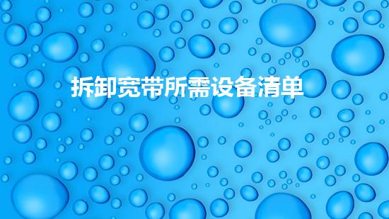 摘要:随着科技的发展,宽带已经成为了人们日常生活中不可或缺的一部分。然而,在拆除宽带时,需要使用各种设备,因此本文将介绍拆卸宽带所需设备清单。拆卸宽带的设备清单包括万用表、工具箱、电池电源、电流表、网...