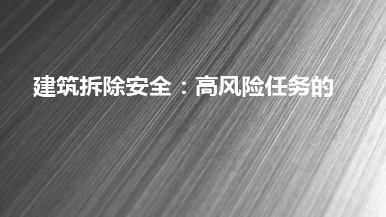 摘要:建筑拆除是一项高度危险的任务,在拆除过程中,必须严格遵守安全规定,以确保工作人员和周围居民的身体安全。本文旨在介绍建筑拆除安全挂图的重要性和作用,并从不同方面进行深入解析。正文:一、概述随着城市...