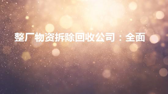 摘要:化工厂的拆除回收是一项复杂的任务,需要专业技能和知识。本文将介绍整厂物资拆除回收公司:全面解析方案与实践,包含清洗置换、设备回收、废液处理、危废处理等方面的实践经验与启示。本文的目标是为读者提供...