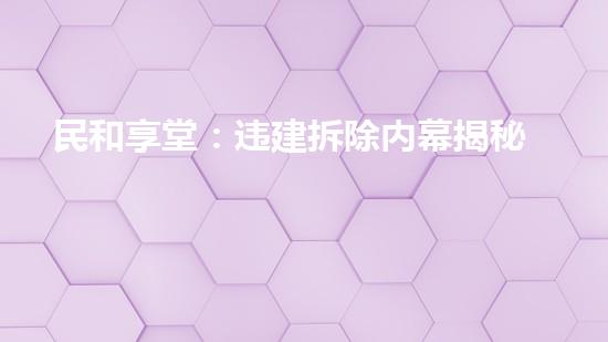 摘要:本文介绍了民和享堂违建拆除的内幕揭秘,从拆除行业专家的角度,对违建拆除从多个方面进行了深入的阐述,包括现场施工情况、拆除技术、污染治理、环保施工等方面,提供了专业、详尽的解析,旨在揭露违建拆除的...