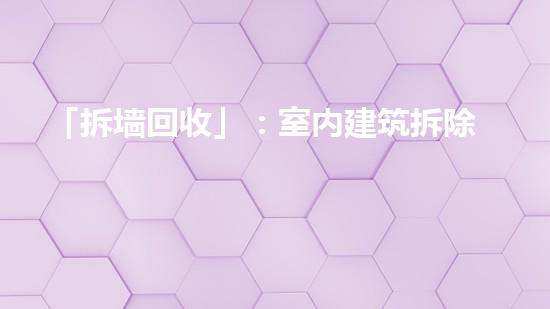 摘要:随着城市建设和旧楼改造的不断推进,室内建筑拆除回收处理公司已经成为近年来一个备受关注的行业。本文以拆墙回收,即室内建筑拆除回收处理公司为中心,通过分析该行业的背景、技术以及发展前景等多个方面,为...