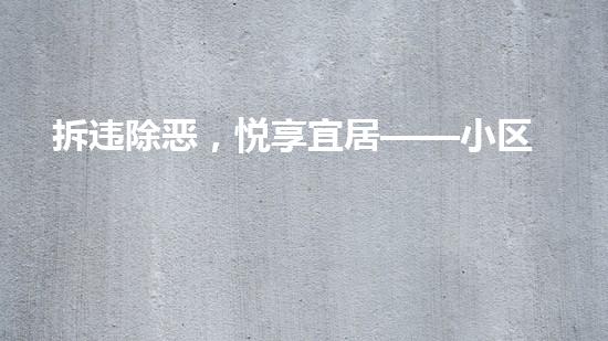 摘要:在城市化快速发展的背景下,小区违法建筑问题日益突出,给居民的生活带来了种种不便和安全隐患。为了解决这一问题,拆违除恶行动开始在全国范围内展开。本文从拆除行业专家的角度,详细阐述拆违除恶,悦享宜居...