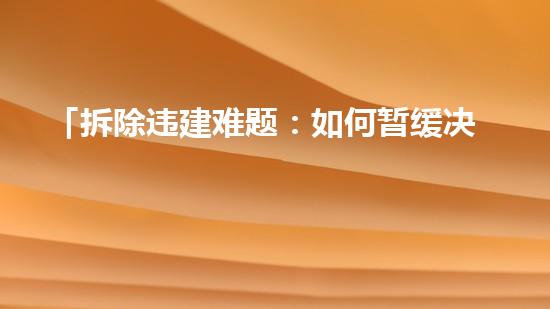 摘要:拆除违建是一个长期困扰着城市发展和社会稳定的问题。然而,在决定拆除违建之前,需要考虑许多因素。本文将从化工技术专家的视角出发,提供一些可行的建议和方法,帮助政府和相关组织暂缓决策。正文:一、关于...