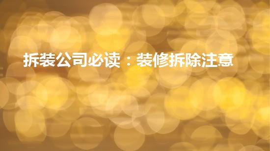 摘要本文将介绍山东省装修拆除规范实用指南,给读者提供相关信息。拆除行业是一个非常复杂的行业,拆除工作涉及到多个方面,包括设备回收、污泥减量化、废液处理、危废处理等。本文将着重介绍这些方面,特别提出巴洛...