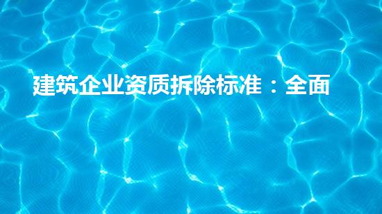 摘要:在建筑拆除领域,建筑企业需要获得相应的资质才能够进行拆除工作。本文将对建筑企业资质拆除标准进行全面梳理,从拆除前的准备工作、拆除技术、物料回收、环保施工等4个方面,深入阐述建筑企业资质拆除标准的...