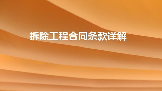 摘要:拆除工程合同是拆除行业的重要组成部分,其条款详解对于保障拆除工程的安全和质量至关重要。本文将从多个方面对拆除工程合同条款进行详细解析,其中包括工程项目范围、收费标准、安全保障、环境保护以及技术要...