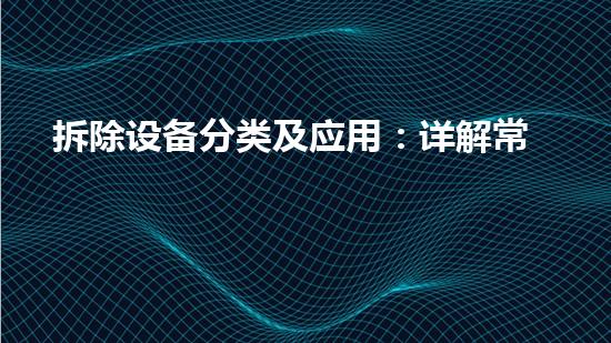 拆除设备分类及应用:详解常见拆除设备及应用场景