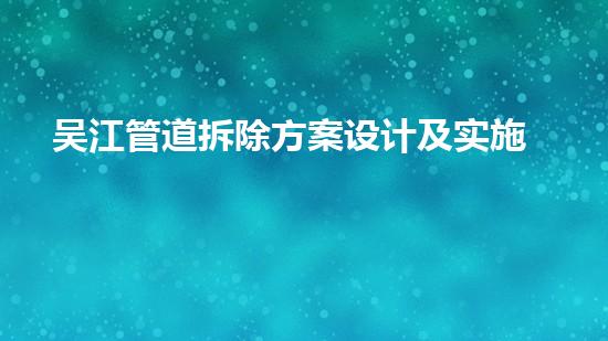 吴江管道拆除方案设计及实施方式分析
