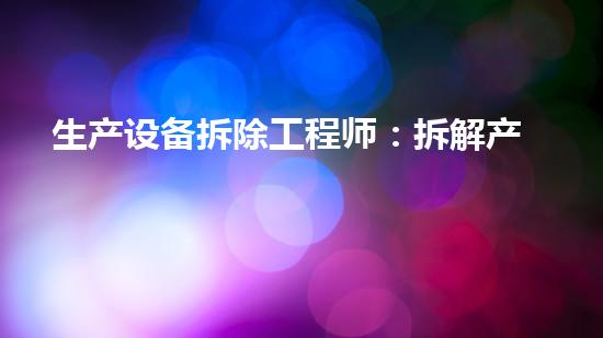 生产设备拆除工程师:拆解产业结构升级的金钥匙