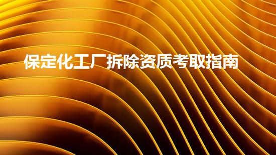 摘要:本文将为大家介绍保定化工厂拆除资质考取指南,主要内容包括考证的必要性、考取条件、考试科目、备考方法和考试难度等方面。通过本文的介绍,读者可以了解到保定化工厂拆除资质考取的相关知识,更好地为自己的...