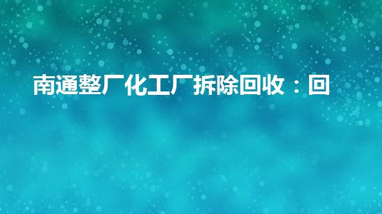 南通整厂化工厂拆除回收:回收旧物拯救新环保