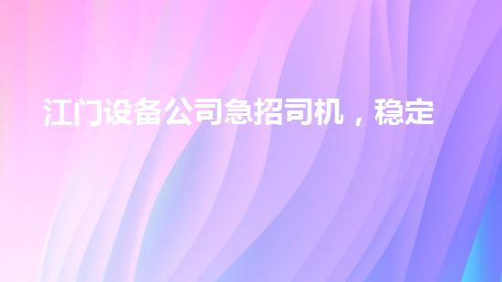 江门设备公司急招司机,稳定高薪待遇!