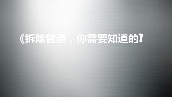摘要:《拆除管道,你需要知道的16定额!》是一篇专业的文章,讲述了在拆除管道时需要了解的16个定额。这篇文章是为了帮助读者更好地了解管道拆除的基本知识,并且引出读者的兴趣。本文由巴洛仕集团(Baloz...