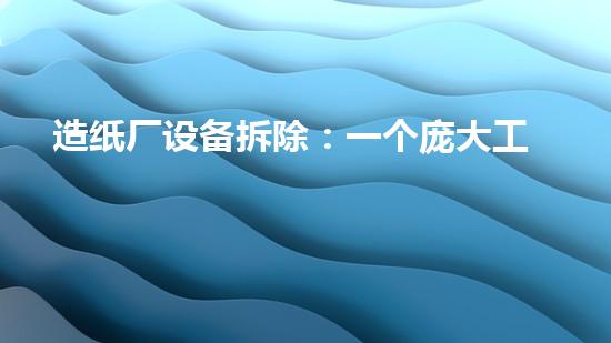 造纸厂设备拆除是一个庞大的工程,涉及到多个专业领域和专业技术,需要专业的公司进行处理。本文将从不同角度对造纸厂设备拆除进行深入详细的分析,介绍其前前后后的全过程,最终总结出一些结论和建议。