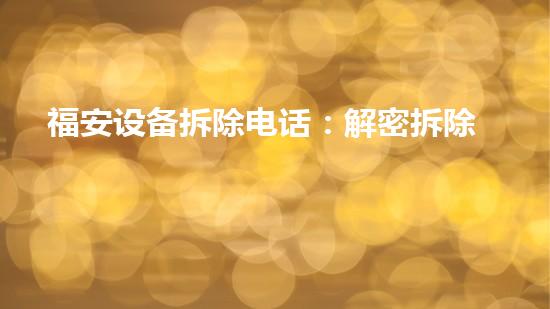 通过以上几个步骤,福安设备拆除电话可以确保设备拆除的顺利进行,同时能够保护外界环境和设备本身的安全。