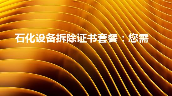 随着化工设备技术的不断发展和更新,需求也不断变化,因此现在石化设备的拆除已经成为市场的一个重要领域。在这样的市场环境下,出现了很多的石化设备拆除证书套餐供应商,以满足市场的需求。在本文中,我们将介绍石化设备拆除证书套餐的所有信息,并分析该领域的前景。