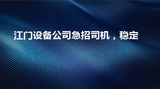 江门设备公司急招司机,稳定高薪待遇!该公司拥有一流的管理团队,严格按照招聘要求录用合格的人员,而且为员工提供丰富的培训和福利,旨在给予员工更多的发展空间和机遇。如果你符合招聘要求,同时对该公司有兴趣,那么我们欢迎您加入我们的团队。