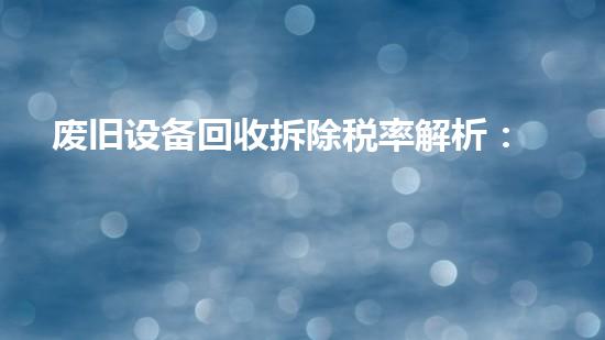 废旧设备回收拆除是一项对环境起到积极作用,同时也可以降低企业成本的重要工作。中国政府对废旧设备回收拆除也出台了相应政策,在这些政策中涉及到了税率问题。根据税率政策的规定,只有符合一定要求的废旧电器、电池、计算机等才能享受税率优惠,未达到规定要求的设备则不能享受税率优惠。企业应该在需求设备时,尽量选用符合规定的设备,以此来节省成本。