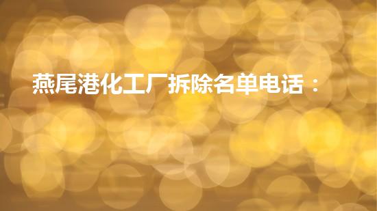 本文介绍了燕尾港化工厂拆除名单电话:一个安全和环保的进程,重点关注了拆除过程中的安全和环保问题。本文旨在引起读者的兴趣,并提供相关的背景信息。