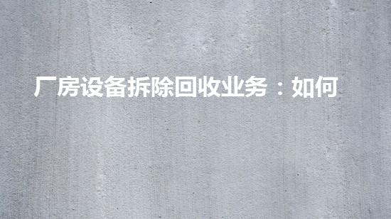 厂房设备拆除回收业务是一项重要的工作,如何进行高效安全的处理废旧设备是企业必须要考虑的问题。本文将从以下几个方面进行深入分析:设备拆除前的准备工作、拆除方案的制定、采用的技术和工具、废旧设备回收和处理、危险废物处理和土壤修复等方面,为读者提供专业的建议和解决方案。