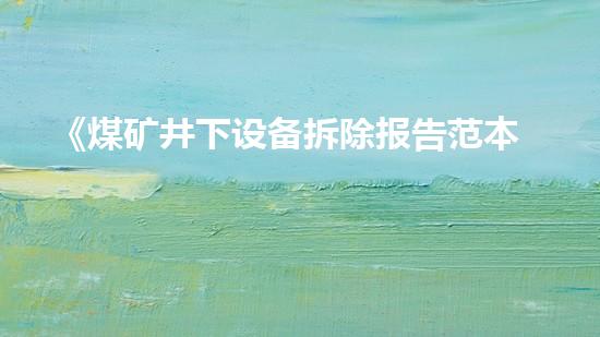 《煤矿井下设备拆除报告范本》是一篇介绍煤矿井下设备拆除报告的模板的文章。该文章详细介绍了拆除报告所需包含的内容和形式,并给出了实例说明。本文以该文章为中心,分析其内容的深入介绍,为读者提供专业的分析和支持。