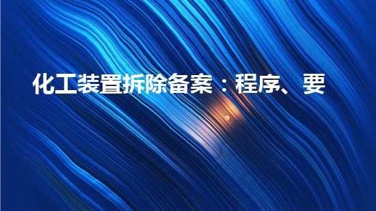 化工装置拆除备案是指在化工企业关闭或重组的过程中,按照国家有关法律法规和标准要求,组织和实施化工设施的安全拆除和危废处置工作,并将拆除及处理过程和结果进行记录和备案的一项程序。本篇文章将从程序、要求和注意事项三个方面进行深入探讨,为读者全面解析化工装置拆除备案的相关知识。