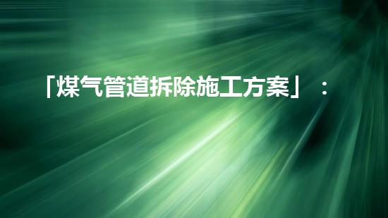 在进行煤气管道拆除施工前,项目的前期准备十分必要。前期准备包括项目规划、组织机构、技术文件及方案等的编制,要求具备严谨、规范、科学等特点,确保项目顺利进行。