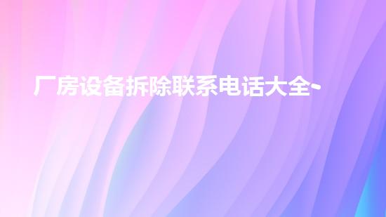 本文总结了厂房设备拆除相关的联系电话,包括设备拆卸、清理、回收、拆毁以及报废处理等。这些电话号码可以让相关企业更好地去解决相关问题,同时,建议相关企业在选择公司时,也要对公司的专业性进行核实。