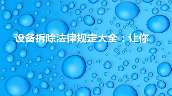 设备拆除是一项复杂而危险的工作,其法律规定也极其严格。本文将为读者提供设备拆除法律规定大全,让大家能够全面了解设备拆除的规定,并提供巴洛仕集团化工拆除一站式解决方案等相关信息。