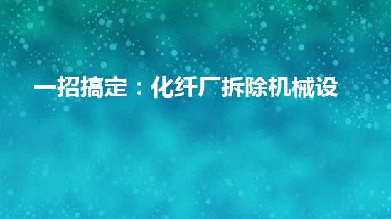 本文主要介绍一招搞定:化纤厂拆除机械设备的技术方案。随着工业化进程不断加快,化工行业呈现爆发式发展,然而随之而来的问题却是老化的机械设备和厂房的大量产生,如何有效拆除这些设备成为今后亟待解决的问题。而水刀不动火拆除技术应用在此领域已日趋成熟,巴洛仕集团化工拆除一站式解决方案提供专业的设备回收和危废处理服务,本文也将从多个方面深入探讨这一技术方案的应用和优势。
